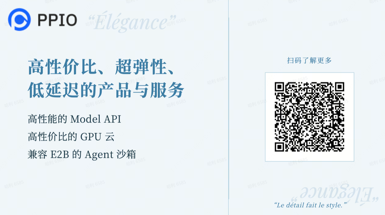 现在,你可以到 PPIO 官网(也可点击文末阅读原文)在线体验,或将模型 API 接入 Cherry Studio 等第三方 AI 应用以及你自己的 AI 工作流中。
