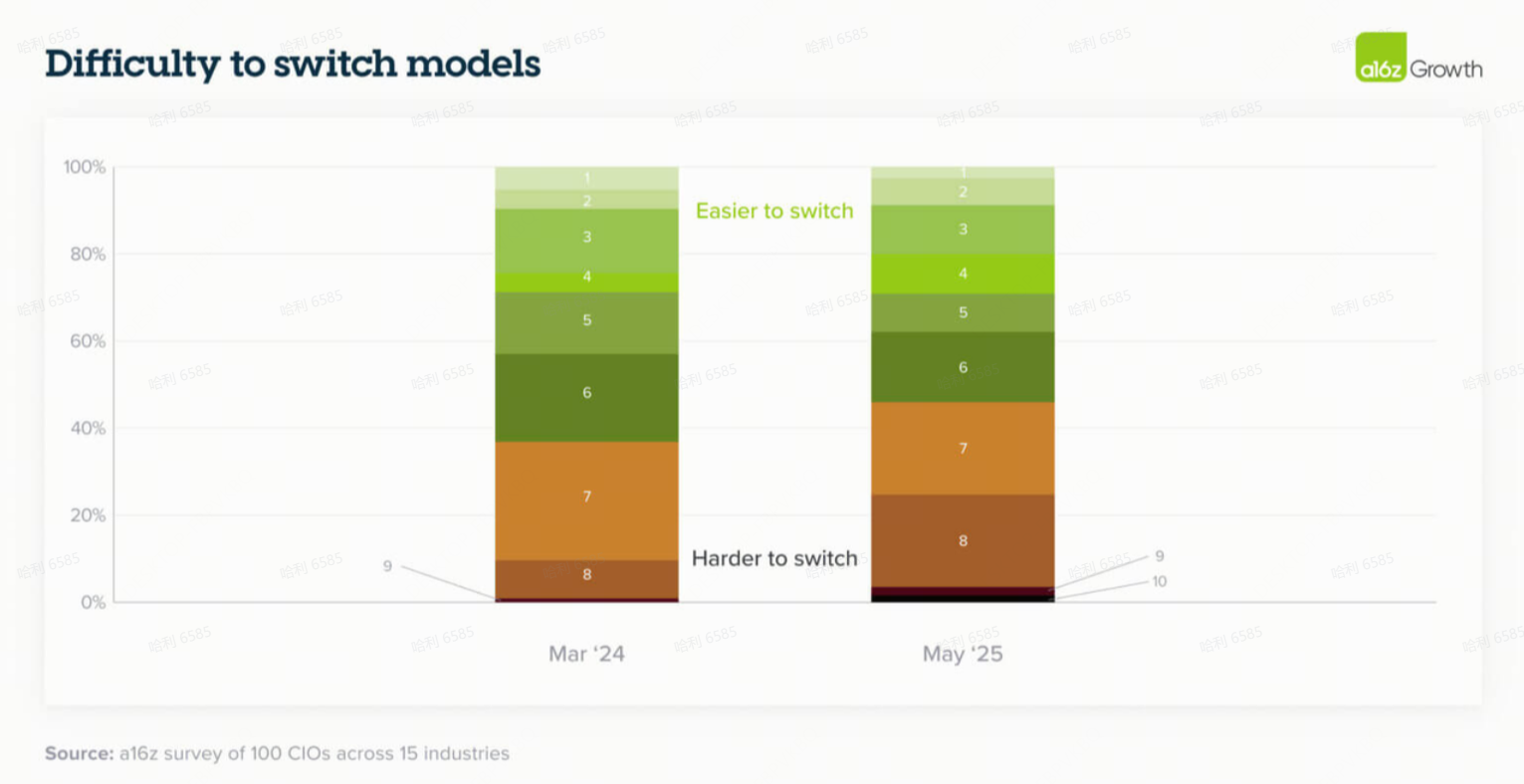去年,我们发现大多数企业正在设计其应用程序以最小化转换成本,并使模型尽可能可互换。因此,许多企业将模型视为“来得容易,去得也容易”(easy come, easy go)。这对于简单的、一次性的(one-shot)用例可能很有效,但智能体工作流程(agentic workflows)的兴起开始使得在模型之间切换变得更加困难。